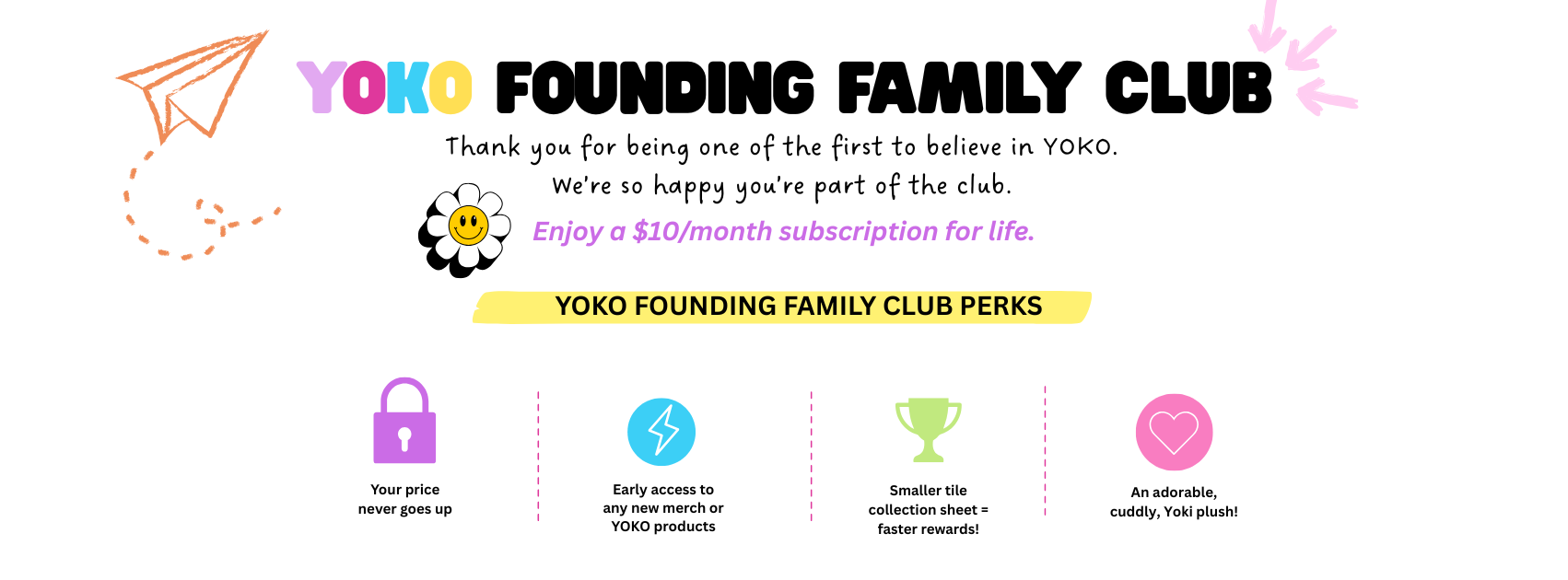 Founding Family Club Clear Filters Filter Clear Filter YOKO Founding Family Club $10.00 every month Subscribe Added! YOKO Founding Family Club (Duo) $18.00 every month Subscribe Added! No results found No results match your search. Try removing a few filters. Have Questions?